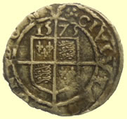 | 1573 Elizabeth hammered silver sixpence | 1422-61 Henry VI hammered silver half penny Obv hENRIC REX ANGL Rev CIVI/TAS/CANT |