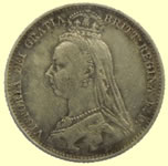 1892 Victoria milled silver six pence | ||
