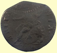 1653 Jeremy Erds of Manningtree Essex hammered copper trade farthing Obv I.E 1653 |