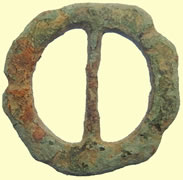 | 17thC lead token | 1500- 1650 buckle | 17thC hammered copper trade farthing | |||||||||||||