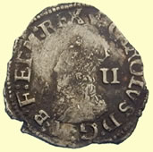 | 1625 Charles 1st hammered silver penny | 1679 Charles II milled silver two pence | ||||||||||||||