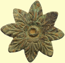 | A Medieval (1250-1450) sheet copper alloy domed sexfoil belt mount | 17thC clothing fastener | 87th Regiment of Foot O/R's (Brass) - 1855-1881 |