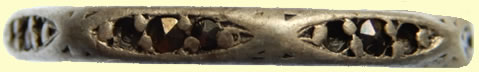 | 1895 Victorian silver band - London | 18thC silver Royal Navy button | 1603 James 1st trade weight - Crown I cipher | |