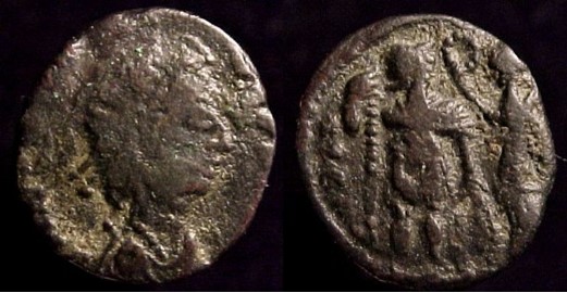 4thC Roman bronze coin - interesting obverse - sent for ID Chris, This piece is mighty scant of legend, but I can make a few reasonably safe assumptions about it. It could be Crispus, Constantine II or Constantius II – (and possibly Constans?) at any rate, it’s one of the sons of Constantine I – here’s a typical Crispus from that time: a Constantine II, Caesar and Constantius II, Caesar: I think you can see how similar they are, also that aside from a few letters in the area off-flan on your specimen, their legends are essentially very much the same as well. The most commonly seen ruler (although not, evidently, at the time I was photographing – I’m sure I have better specimens now, but they are awaiting their eventual turn on my website) is Constantine II, Caesar, but Constantius II, Caesar is right up there in numbers as well. Mark