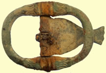 | 18thC crotal bell | 1600-1650 buckle | Georgian silver spoon handle | |