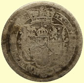 | 1840 Victoria milled silver three pence | 1922 George V milled silver shilling | ||
