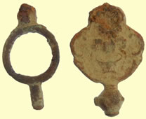 | 17thC lead token | Georgian watch winder | 18thC clog fastener | |