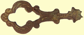 | Medieval decorated buckle plate | Medieval riveted strap end | ||
