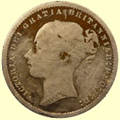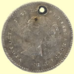 | 1840 Victoria milled silver four pence | 1886 Victoria milled silver three pence | ||