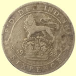 | 1921 George V milled silver sxpence | 1649 Commonwealth hammered silver penny | ||