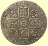 | 1826 George IV milled silver shilling | 1928 George V milled silver half crown (30 pence) | ||