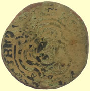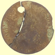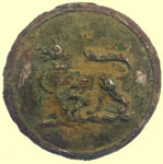 | 16thC Tudor button | 16thC Tudor button | 1634 Charles 1st hammered copper rose farthing | |