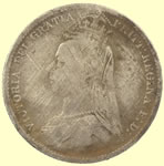 | 1900 Victoria milled silver shilling (12 pence) | 1216 hammered silver short cross half penny | ||