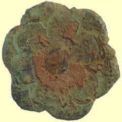 | Victorian silver mount | 16thC Tudor button | Unknown shipping line button | 15thC lead token | ||||||||||||