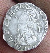 | 1641-3 Charles 1st hammered silver penny - mintmark 2 dots | First 1645 Charles 1st hammered silver cut half penny I have seen A mint mark - Ashby |