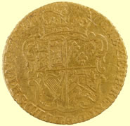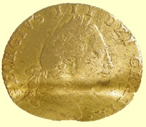 1762 George III gold qtr guinea 2.10g, 15.55mm |
