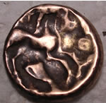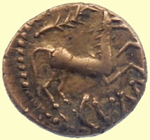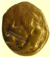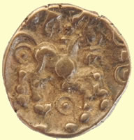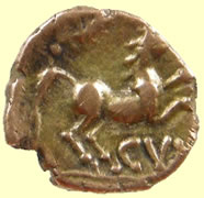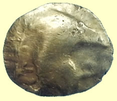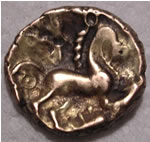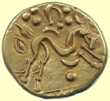 'This is quite a rare type, as you no doubt appreciate. The best parallel is provided by three coins in the British Museum, listed in their catalogue as nos. 3353-55. It's one of a group of coins loosely described as the Snettisham staters, because several of the types were first recognized in one of the Snettisham (Norfolk) hoards of the early 1990s. The exact type is not in Van Arsdell although it's closely related to the North Thames types listed as VA 1500, 1502 and thereabouts. It is presumably an East Anglian type, although because of the stylistic similarities there must have been some very strong link between the producers of the Snettisham types and the North Thames types. Date c. 50 - 40 BC, I think.