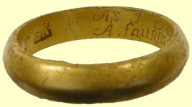 Medieval gold posey ring with full Lombardic inscription and with the flower possibly representing the wound of Christ- working on the legend to dechiper it - Reported as treasure to Colchester museum 22.38mm O/dia x 1.64mm T , 2.77g