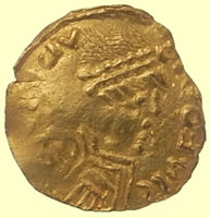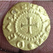 English Saxon Thrymsa gold coin - Crondall types c620 -650 AD named after the hoard found in 1828. Sent off to the Fitzmuseum Corpus database for recording 1.26g, 11.46mm