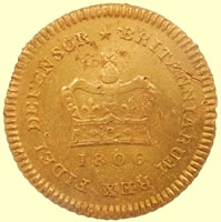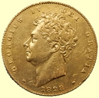 The obverse side of this coin bears the portrait of the King, facing left, with the usual latin written around George's head, while the reverse features Pistrucci's artwork of St George slaying a dragon.
