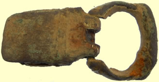 Interesting early item like a protected loop terret - offset wear means it is some type of strap guide