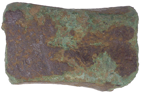 Bronze Age ingots and casting waste from Axe hoard reported to museum 101g, 34mm L x 35mm H x 21.8 nm T |