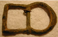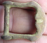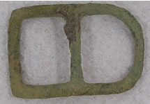 Cast copper alloy tapering D-form buckle of 17th century date. The buckle has a leaf-shaped projection on the outer edge. AD 1600 - 1700 |