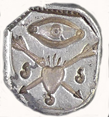 | Disclaimed | 25 BC Clacton Cross type, ABC 2356, the companion quarter to British F, the Late Clacton stater, ABC 2332. In ABC it's illustrated as a 'three men in a boat' design but the obverse is probably a degraded boar ; at the moment there are around 30 known, mostly from Essex and Suffolk so it's a definite Trinovantian type. 1.37g, 12.7mm |