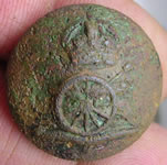 Post 1802 type- A garter strap inscribed Royal Artillery with the Royal crown above. Georgian royal cipher 'GR'. | Unknown Royal Artillery type button ? |