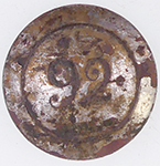 Description: 92 within plain inner circle. Category: Regular Army; Type of button: Convex 15mm ; Metal: Copper Alloy silvered; Backmark: EXTRA STRONG PLATED Date: c1820-1840