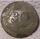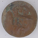 Description: Crown over LM with 2 below Category:English Infantry Militia Type of button: Flat ; Metal: Copper Alloy silvered. Backmark:; Date: c1793-1803 |