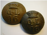 2 Stunning 13th Light dragoons unlisted buttons - pre 1800