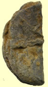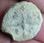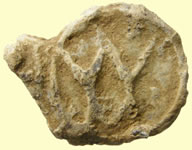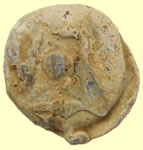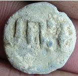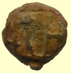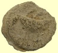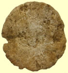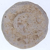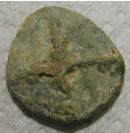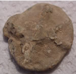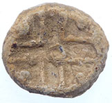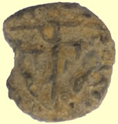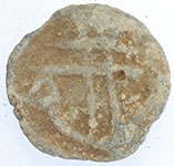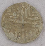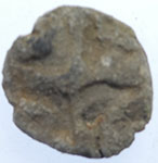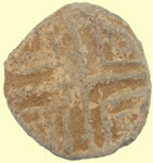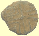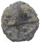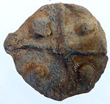 | 35.Toothcomb or halfbeard {type 35}: Introduced during the first revision to accommodate certain pieces found in Forgeais, this is an exclusively French type, borrowed from certain elements of their local coinage, in which the lower half of the design consists of a series of parallel lines. The upper part can be various, but often appears as the components of a face, albeit sometimes rather strangely rendered. In practice this may just be some combination of crosses, annulets and pellets which comes across as nose and eyes. J.N.Roberts' "Silver Coins of Mediaeval France", p.269, explains that the type derives from the French region of Champagne, where a numismatic pun was effected by putting a comb {peigne} in the field {champ} of a coin. |