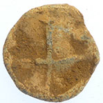 Very rare find, 15thC type 2 lead long cross and pellets lead token but with a detailed obverse. Appears to be two sword/daggers with the letter N