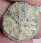| 25.Miscellaneous Objects, Royal {type 25}: Symbols such as crowns, roses, eagles and the like. The late Elizabethan pieces with double-headed eagle on one side and crowned rose on the other, c.1570-1600, are a notable example, although they are not part of the run of crude agricultural pieces. Occasional overlaps and hybrids: The main confusion arises from whether the items depicted are interpreted as royal or not; a decision one way would assign to one of a variety of types {e.g. 4,16,17,18, 19}, a decision the other way to type 25. Crowned heads are assigned to type 10, i.e. that type takes preference. Shields with one or more lis on are debatably type 4 or 16; and, if crowned, 4, 16 or 25 |