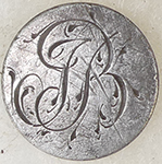 18thC silver toggle fastener with initials AB - 2.69g, 24.94mm L x 14.48mm W Treasure case: 2007 T572. |
