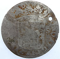 ObverseDate above crowned arms (eagle) dividing value Lettering: Translation: Silver money of the city of Deventer ReverseKnight on a striding horse Lettering: Concordia res parvae crescunt Translation: