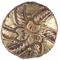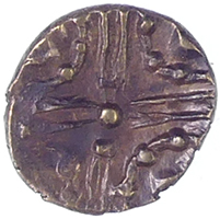 25 BC Clacton Cross type, ABC 2356, the companion quarter to British F, the Late Clacton stater, ABC 2332. In ABC it's illustrated as a 'three men in a boat' design but the obverse is probably a degraded boar ; at the moment there are around 30 known, mostly from Essex and Suffolk so it's a definite Trinovantian type. Martin Reported to museum and CCI - now disclaimed 1.41g,13.88mm Iron Age Gold Quarter Stater