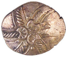 Nj Joe, on his first trip here, popped a mint Dubnovellaunos Celtic gold qtr stater last week and got his freebie Club sweatshirt and Club mug as a bonus for such a beauty find. Nh Dean managed to find a mint Queen Anne milled silver four pence, first we have ever found and also a mint undamaged Victorian silver spoon on pastureland near an old church. I have posted a picture below of an ancient silver coin that so far I have been unable to find in any of my reference books. If you recognise it please mail me with an ID as I am stumped. I have also posted an unknown Edward hammered silver penny of the Bristol mint with a curious mark in the centre of the reverse cross. My reference books show no Bristol mint coins with any mark ? If you have any info on this coin can you drop me an e-mail with details please.