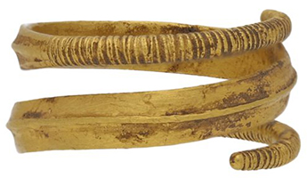 1300 BC gold armlet ring- reported as treasure 2.0g, 12.68 mm x 1.61mm T x 7.4 mm H