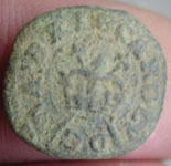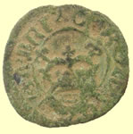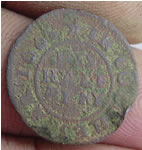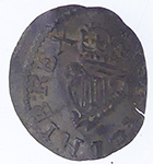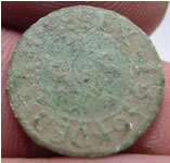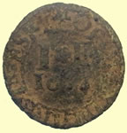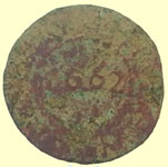 Unknown 1667 His Halfpenny hammered copper trade farthing Rev RPM or RRM |