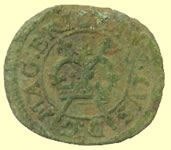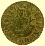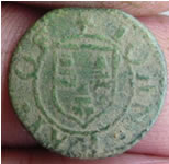 | 17thC Elias Moortier , bays maker of Colchester hammered copper trade farthing | |